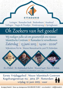 Kom zaterdag 13 juni en vier samen met ons de opening van het nieuwe islamitische centrum van verenging Ettaouhid en de komst van de gezegende maand Ramadan!