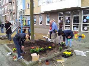 Naast het schoonmaken van de straat, werd ook het groen aangepakt. De Schietbaanlaan kent al prachtige plantsoenen, onderhouden door bewoners. Enkele plekjes konden nog wat fleur & kleur gebruiken. Na flink schoffelen en onkruid wieden, zijn met groene vingers fantastische bloemen geplant en zaden gezaaid (benieuwd wat dit gaat worden!). Naast zaden, heeft deze dag ook veel positiviteit gezaaid onder de buren. Zij gaven aan vaker iets met elkaar te willen ondernemen. De dag werd afgesloten met een heerlijke Couscous-maaltijd bij Vereniging Ettaouhid.